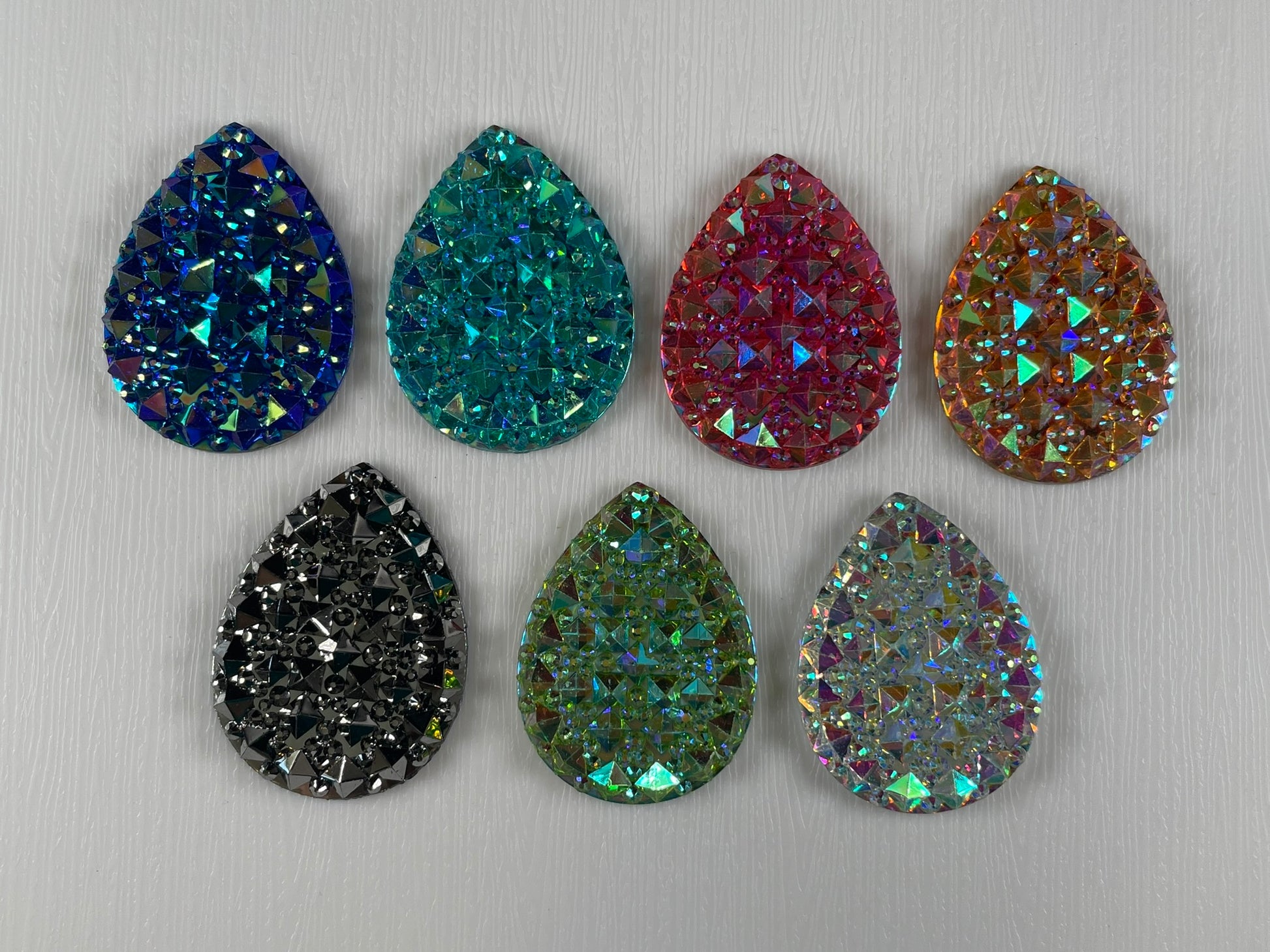 AB Colour Drop Shape Resin Flatback Crystal (1 piece each, if you are wanting a pair select 2 pieces)